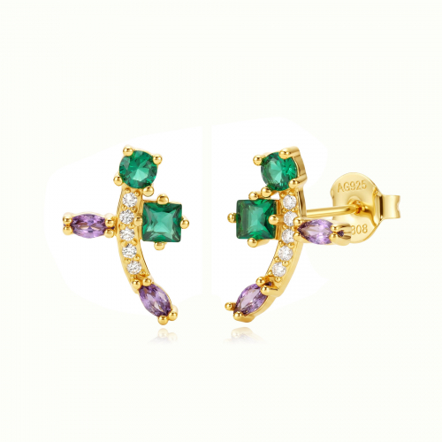 Multi Zirconia Gold plated Earrings – Cross