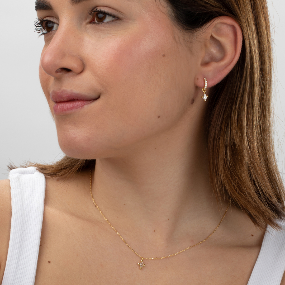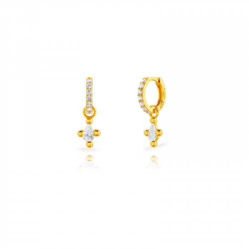 Hoop Earrings - Teardrop Zirconia -White zircone