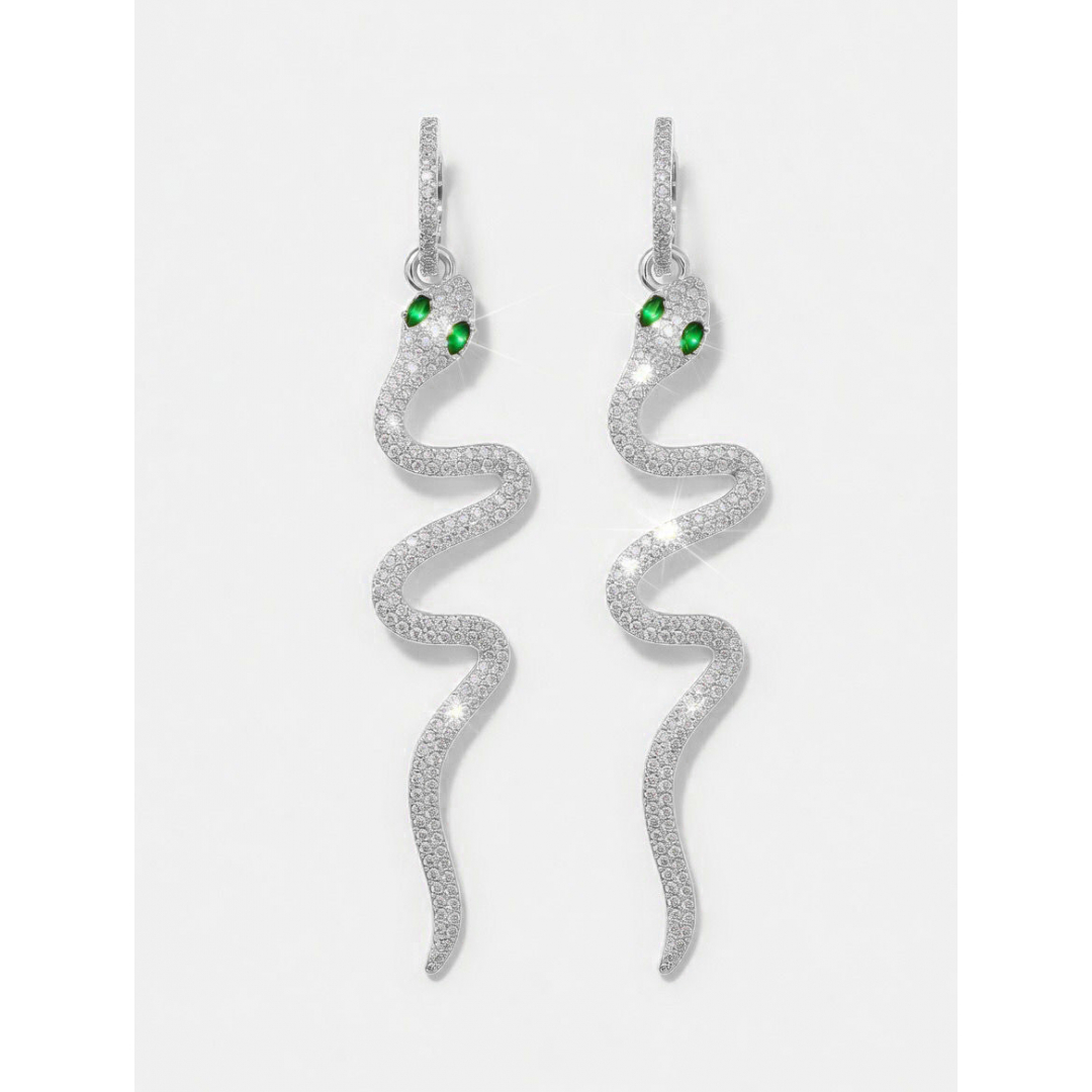 Earrings - Green Zirconia - Snake - 56 mm Silver